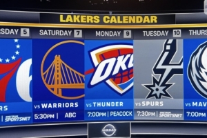 湖人媒体@PurpGolded晒出了湖人接下来5连主场赛程,他们将先后对阵76人、勇士、雷霆、马刺、独行侠。