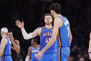 体育资讯2月21日讯 NBA常规赛雷霆对阵篮网,半场结束,雷霆50-33领先。