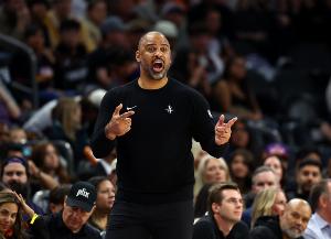 赛后,火箭主帅乌度卡接受了记者采访。谈到末节的防守阵容(杜兰特、阿门、伊森、芬尼-史密斯和小贾巴里),他说道:“我认为这个防守阵容让我们更好地有机会遏制对手的攻势。”