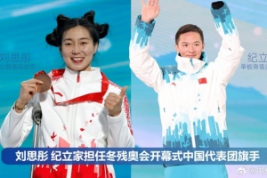 体育资讯3月5日讯 2026年米兰-科尔蒂纳冬残奥会中国体育代表团宣布,高山滑雪运动员刘思彤和单板滑雪运动员纪立家将担任开幕式中国体育代表团旗手。