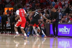 上一篇: 没大碍!爱德华兹和霍福德抢篮板时被后者踩到脚踝 手捂着不舒服