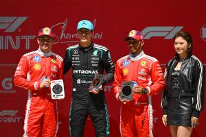 体育资讯03月14日讯 2026赛季F1中国大奖赛冲刺赛今日11:00在上海国际赛车场进行,拉塞尔夺冠!勒克莱尔第二,汉密尔顿第三。