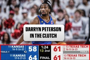 比赛最后时刻,堪萨斯大学打出一波17-4的攻击波完成大逆转,彼得森最后投中了两记高难度三分,包括准绝杀的三分。