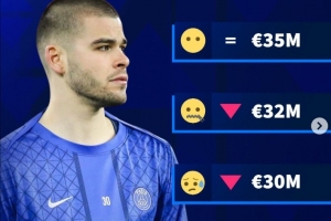 本赛季目前为止,舍瓦利耶出场26次,零封10次丢28球,他已经失去了在巴黎的主力位置。