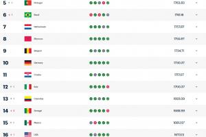 体育资讯04月01日讯 FIFA最新排名:法国超西班牙升榜首 意大利升至第12 日本第18