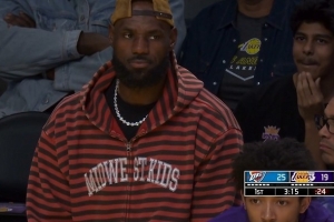 GIF-詹姆斯来到场边
