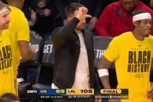GIF-梅尔顿垃圾时间投三分 东契奇比拇指向下