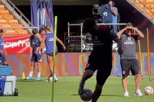 马竞正在备战这场决赛,马竞主帅西蒙尼在赛前的训练中颠球,展现了自己的娴熟脚法。