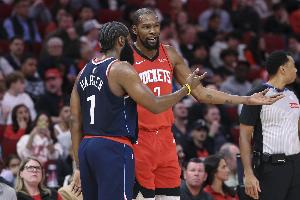 “我真心觉得这些家伙之所以还能打出这些数据,是因为他们仍然是球队的绝对核心,对吧?球权依然在他们手里。他们并没有沦为角色球员。凯文·杜兰特没有改变他的角色。科怀·伦纳德没有改变他的角色。保罗·乔治没有改变他的角色……还有詹姆斯·哈登。在NBA,只要球权在你手上,你就依然能打出华丽的数据。这并不是说你已经失去了比赛的能力。不,你手里还有球。你可能确实慢了一些,但你依然知道该怎么打比赛。”
