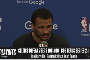 体育资讯4月25日讯 NBA季后赛首轮G3,凯尔特人108-100战胜76人,大比分2-1领先,赛后马祖拉接受了媒体采访,以下为采访全文。