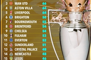 OPTA预测英超结局:阿森纳82分夺冠,曼城79分次席,热刺降级