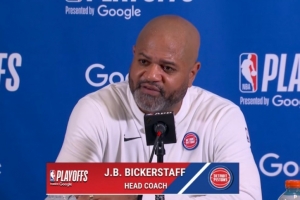 比克斯塔夫:我们要一场一场地打,这就是季后赛。我们来到这里,只要周一赢下比赛,就能夺回主场优势。至于今晚的比赛——抱歉,是今天的比赛——我们会从中吸取教训。但这已经过去了,这给了我们更多机会去研究,更多录像去观看,更多时间去为周一做准备。你不能对失利耿耿于怀,我们的球员一整年都表现得很稳定,我们能够把注意力转移到下一场。所以我相信我的球员们,我们会专注其中,从中学习,研究录像,不断进步。到了周一,我们会准备就绪。