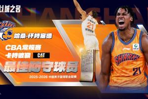 体育资讯04月26日讯 CBA官方公布了2025-26赛季的常规赛最佳防守球员,他就是来自上海大鲨鱼的怀特塞德。
