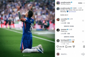 恩佐赛后在社交媒体上晒出庆祝的照片,配文:“又一场决赛,蓝军球迷们,温布利见!”