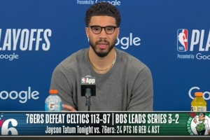 体育资讯4月29日讯 NBA季后赛,凯尔特人97-113不敌76人,总比分3-2领先,绿军球星塔图姆赛后接受了媒体采访,以下为采访全文。