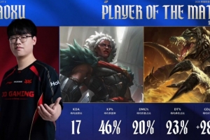 徐徐的神!Xiaoxu安蓓萨游龙+史前巨鳄当选JDG横扫NIP全场最佳