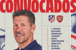 马竞对阵阿森纳首回合名单:格列兹曼、小蜘蛛领衔,冈萨雷斯缺席