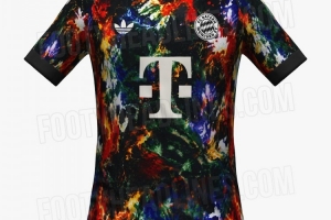 拜仁下赛季的啤酒节球衣采用大胆且非传统的设计。这款球衣以黑色为底,覆盖着多色抽象的全覆盖图案,各种色彩以近乎拼贴画的方式融合在一起,营造出一种混乱却视觉冲击力十足的外观。该球衣预计将于2026年底正式发布。